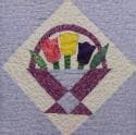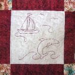 The swap that started it all. Fifty quilters — one from each state — traded traditional 12" quilt blocks representing their home states. Theme--centered around a designer floral fabric, complemented by a palette of burgundy, forest green, and cream. Our quilters choose patterns or designed quilt blocks to represent their states. We have a variety of quilt blocks from Eskimos, Cowboy Boots, Crabs, New York Skyline, Liberty Bell, Lighthouses, Cabins, Beehives to New Hampshire's Old Man in the Mountain. The following quilt blocks were named by our quilters in our swap. When I envisioned this swap I never imagined the variety or the uniqueness of quilt blocks we would receive by mail. Every time a sample block came in my mailbox I was amazed at the creativity behind these quilt blocks.....Imagine cross stitched cranberries along two sides of a quilt block. Our participant from New Jersey made 50 quilt blocks with this beautiful cross stitching. Many of our quilters hand stitched their quilt blocks. There are very memorable stories from our original swap. We also gave Nifty Fifty Awards in our first swap at our gathering while we sorted the 2500 state quilt blocks. Block Size: 12” Hostesses: Teresa Drummond and Wendy Clark Envisioned in 1995 and Swap was completed in 1998