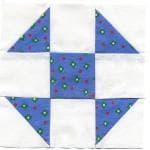 Crisp and fresh, NF9 combined teal, cornflower blue, and white. These 12" blocks have a nautical clarity that makes them perennial favorites.