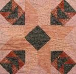 A rich, four-color combination of maroon, hunter green, navy, and white. NF11's March 2004 exchange produced elegant 9" blocks in these deep, sophisticated hues.